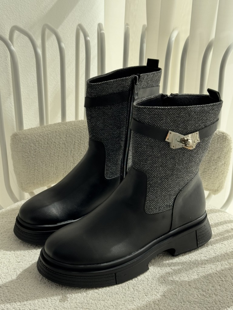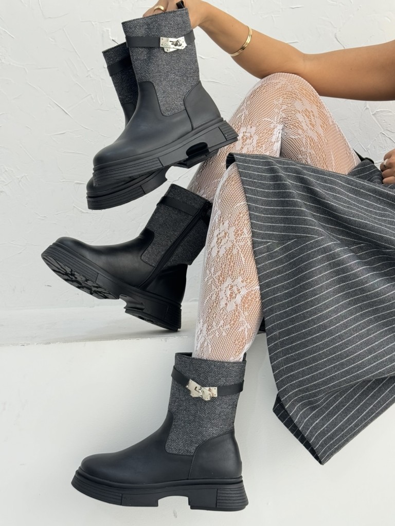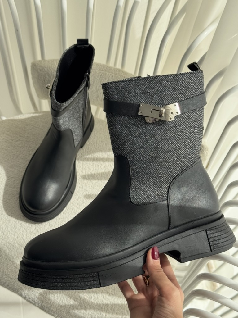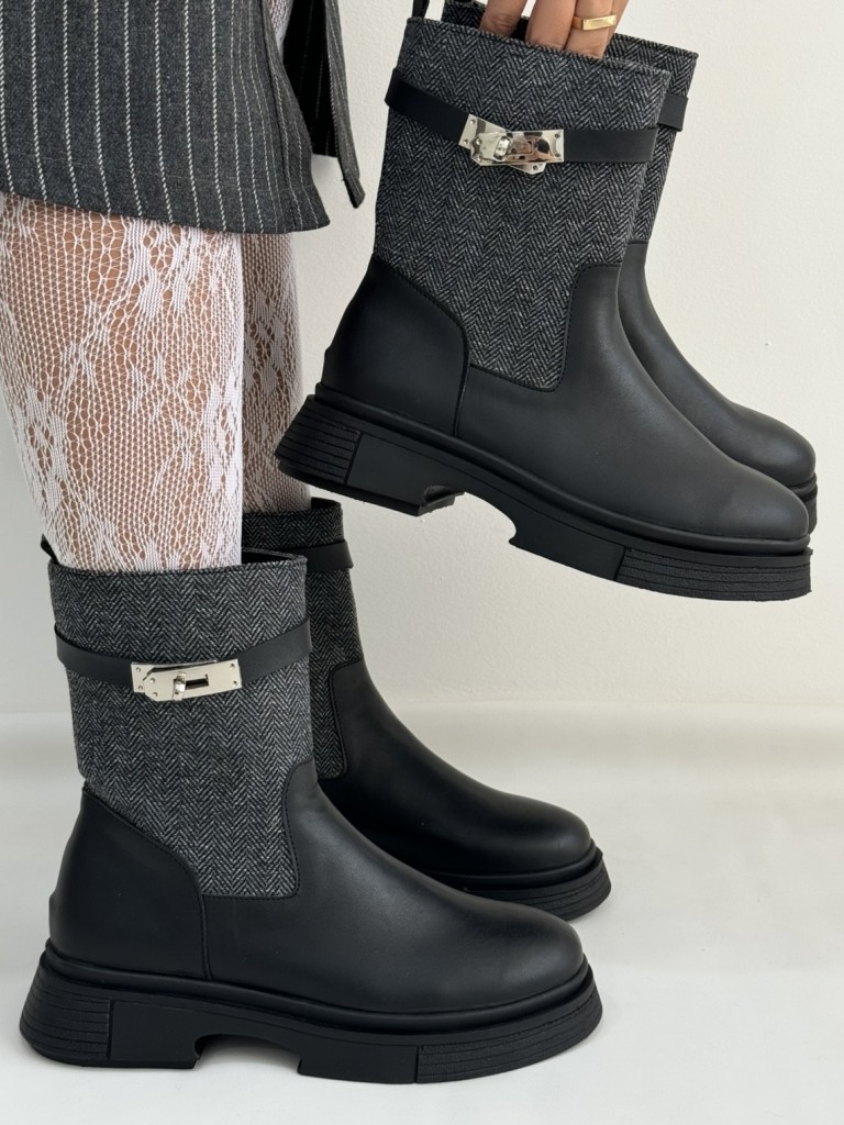 نیم بوت هرمس با زیره پیو و جنس چرمی و پارچه ای