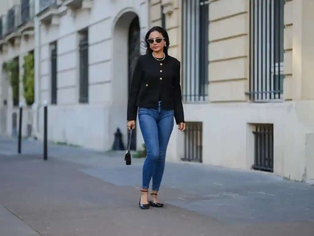 بهتر است شلوار اسکینیتان کمی کوتاهتر باشد تا مچ پا و فرم کفش بهخوبی دیده شود؛ این کار باعث میشود ظاهر شما ظریفتر و متعادلتر به نظر برسد.